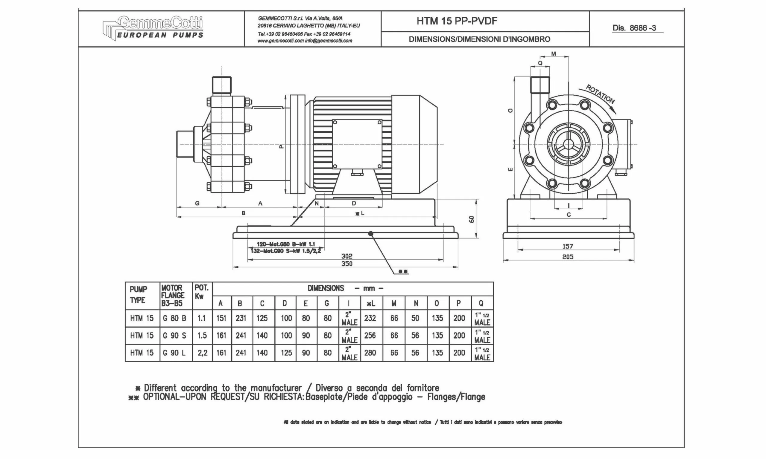 Modèle : HTM15 PP avec moteur triphasé de 1,1 kW et plaque de montage. Délai de livraison d'environ 2 semaines.