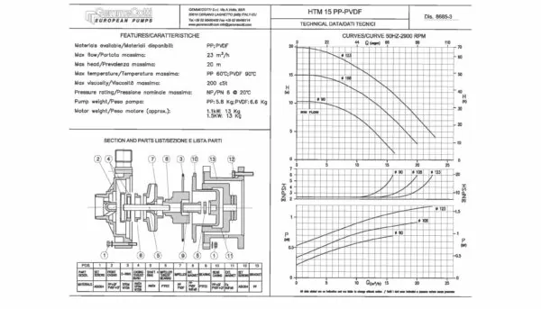 Les pompes HTM sont disponibles en PVDF et PP, avec des joints en Viton, EPDM ou FEP. Ces différentes combinaisons permettent presque toujours d'obtenir une pompe centrifuge adaptée à votre application spécifique. Nos experts se feront un plaisir de vous aider à choisir la bonne pompe.